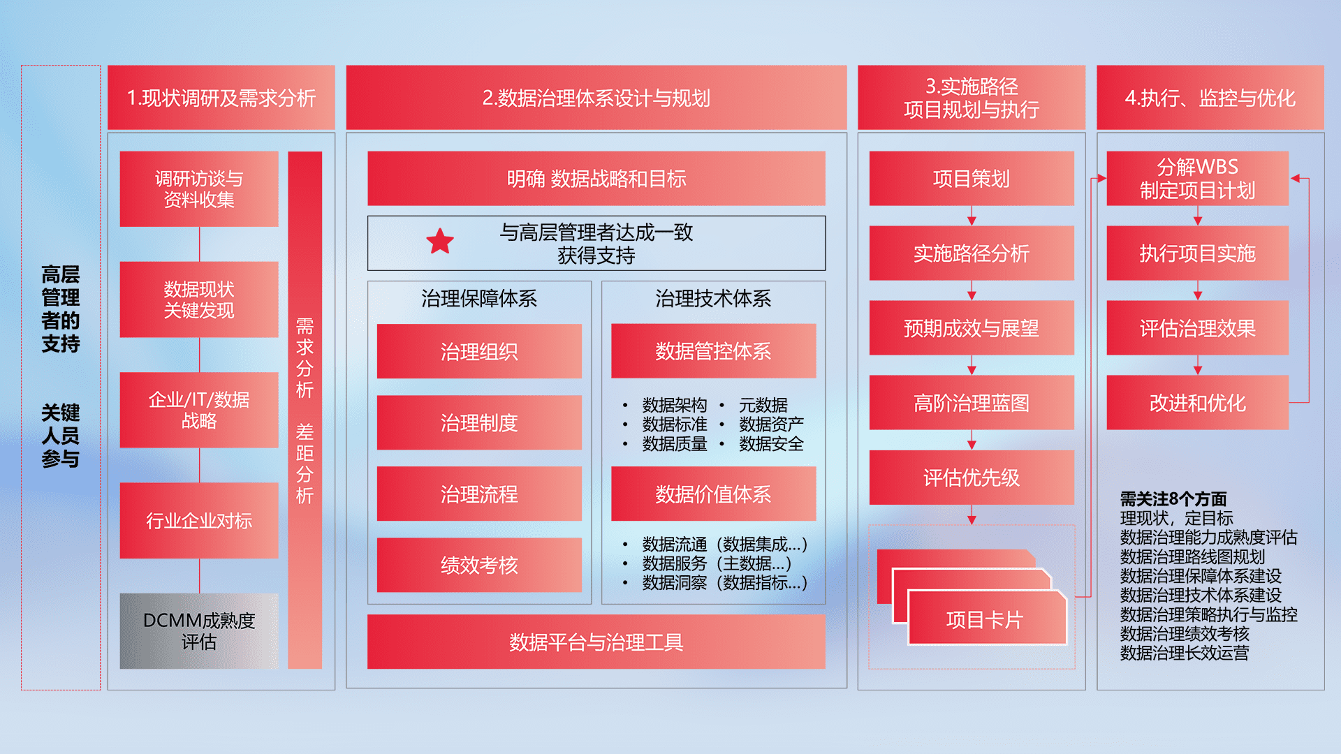 制定并执行统一的数据标准,,,规范数据定义和格式,,消除冗余和不一致性,,,,实现跨部门和跨系统的数据一致性,,,,为企业提供标准化的数据基础。。。